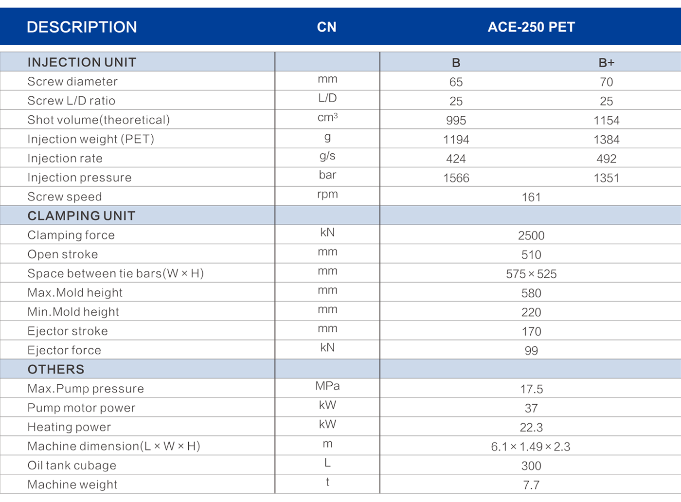 Parameter Table of PET Preform Special Machine