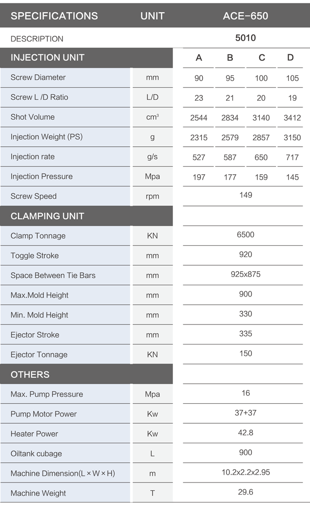 A short powerful double cylinder injection system and high precision linear guiderail, with low inertia and high response mechanism to ensure smooth injection,injection and template deformation, optimization design of screw assembly.achieve better plasticizing effect. Automatic cleaning bucket, anti salivation, anticold start delay function, ensure the efficient, convenient and safe.
